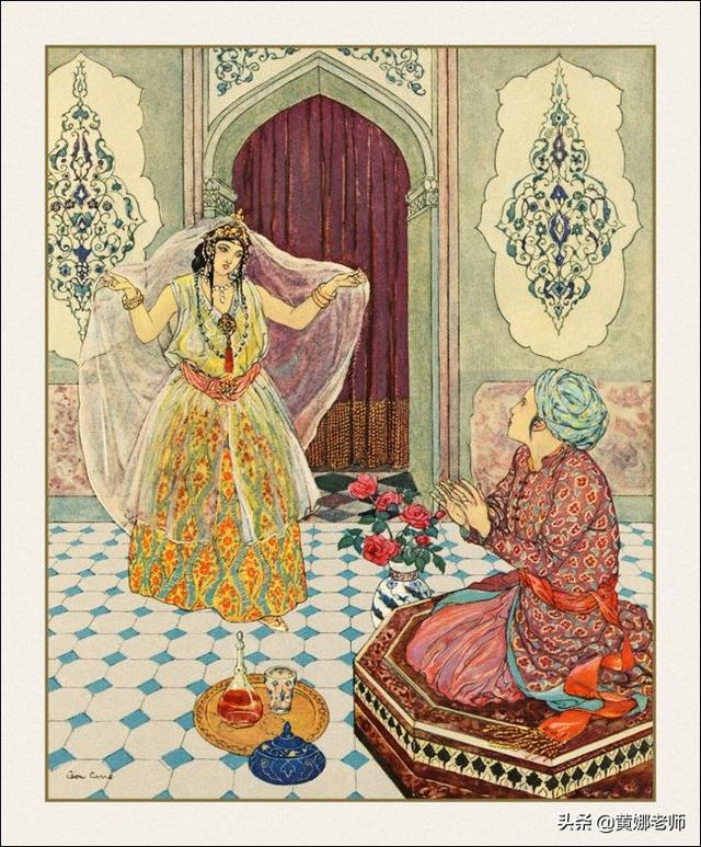 《一千零一夜》里,中世紀(jì)的阿拉伯女郎,著裝色彩豐富,用料輕薄