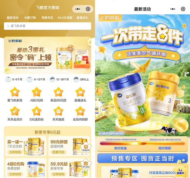 從時間線來看,飛鶴2015年搭建公眾號,2018年構(gòu)建官方小程序商城,進軍微信私域生態(tài)的步調(diào)早于于市面上大多數(shù)母嬰品牌,不光及時完善了底層數(shù)字化基建,還搶占了時間窗口,迅速將用戶盤子做大。