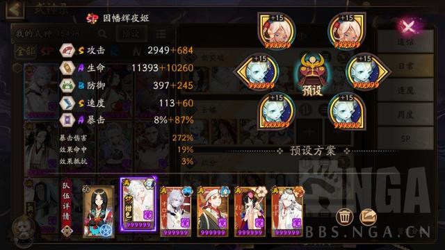 SP輝夜姬(鎖2):蚌精,速生暴傷,防御兩件套為佳,面板暴傷略低于SP大蛇。高速SP輝夜打火更頻繁,可以一定程度上解決SP蛇墮化亂速的問題,并且可以更好地銜接食靈的丟垃圾,不給對方回合。