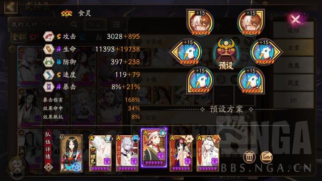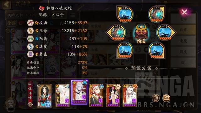 SP蛇:破勢,速攻暴傷,速度高于面靈氣70%,低于食靈,高于鈴鹿御前,面板暴傷全隊最高,計算器額外屬性:暴傷30%,攻擊1200,攻擊10%。