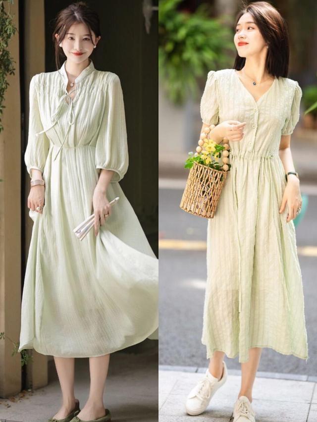 這些綠色和藍(lán)色連衣裙顏色飽和度比較高,而且非常吸睛,穿在身上確實(shí)會(huì)顯得整個(gè)人特別明媚。