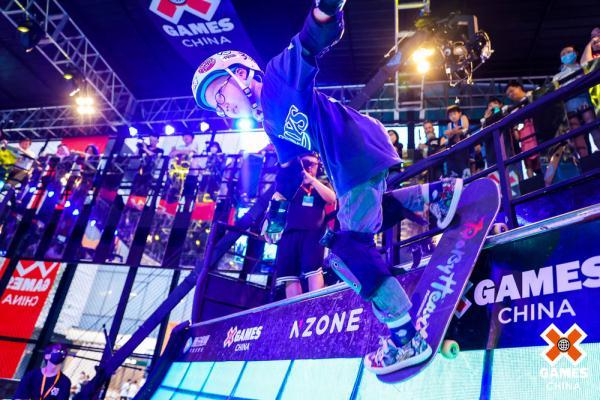 陳子鋒在X GAMES CHINA 2022滑板U池巡回賽比賽中。圖片由賽事主辦方提供