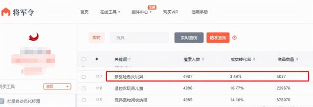 我們可以看到“蜥蜴吐舌頭玩具”有差不多5千的搜索人數(shù),但在線商品數(shù)量是5000,