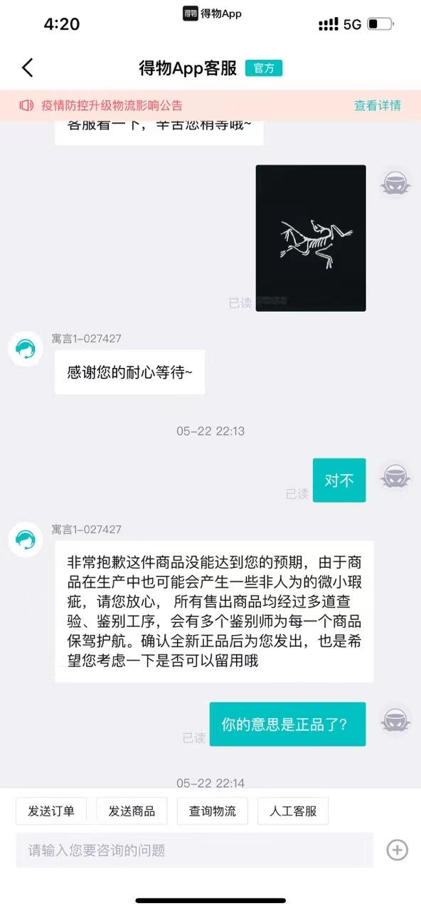 既然得物平臺(tái)有相應(yīng)的鑒別,為何沒發(fā)現(xiàn)logo的不同之處呢?針對(duì)陳先生反映的問題,特搜記者撥打了得物平臺(tái)的官方客服電話??头藛T表示,后續(xù)他們會(huì)對(duì)該批次始祖鳥品牌運(yùn)動(dòng)褲進(jìn)行鑒別和查驗(yàn),有結(jié)果會(huì)及時(shí)反饋。