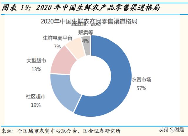 行業(yè)特征:農(nóng)產(chǎn)品線上化潛力巨大。據(jù)農(nóng)業(yè)農(nóng)村部數(shù)據(jù),2016-2021 年中 國農(nóng)村網(wǎng)絡(luò)零售和農(nóng)產(chǎn)品網(wǎng)絡(luò)零售額分別從 8945 億元/1589 億元增長至 20500 億元/4221 億元,CAGR 為 18.04%/21.58%。《“十四五”全國農(nóng)業(yè)農(nóng)村 信息化發(fā)展規(guī)劃》預(yù)計(jì) 2025 年農(nóng)產(chǎn)品年網(wǎng)絡(luò)零售額將超過 8000 億元, 2021-2025 年 CAGR 為 17.50%。2021 年農(nóng)產(chǎn)品網(wǎng)絡(luò)零售占我國網(wǎng)絡(luò)零售總額的 3.2%,占農(nóng)村網(wǎng)絡(luò)零售總額的 21%,滲透率約為 5.1%。以核心品類生 鮮為例,《2021 生鮮電商市場數(shù)據(jù)報(bào)告》顯示,中國生鮮電商市場滲透約 為 7.9%。據(jù)歐睿數(shù)據(jù),生鮮市場以交易量規(guī)模統(tǒng)計(jì),線上滲透率約為 1.0%。 線下農(nóng)貿(mào)市場和超市為代表的傳統(tǒng)模式仍是生鮮農(nóng)產(chǎn)品主要銷售渠道。
