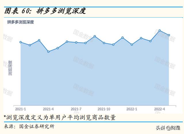2022 年 2 月,拼多多 App 增加“多多視頻”一欄,并開始重點(diǎn)推廣。平臺(tái) 采用現(xiàn)金提現(xiàn)的方式吸引用戶觀看視頻,用戶每觀看一個(gè)視頻內(nèi)容,其綁 定的微信賬戶立刻有現(xiàn)金到賬,通過瀏覽任務(wù)欄中規(guī)定的品類、商家頁面 達(dá)到一定時(shí)間,用戶也可獲得相應(yīng)的金幣激勵(lì)。多多視頻用戶滲透率的提 升效果顯著,從年初的 8%提升至當(dāng)前 25%。從產(chǎn)品設(shè)計(jì)上看,多多視頻和 抖音等短視頻產(chǎn)品類似,采用單列信息流模式,注重用戶的沉浸式體驗(yàn)感, 但不支持用戶自主搜索。內(nèi)容上,除了種草內(nèi)容外,還有包括劇情、美食、 美妝、農(nóng)村戶外、影視講解等,覆蓋面較廣。
