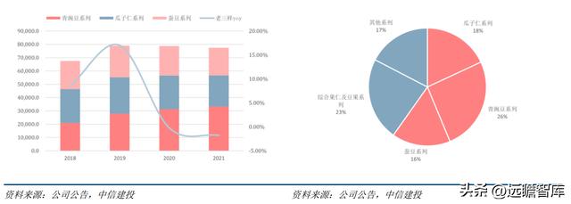 根據(jù)公司年報,僅在2021年,在花生一個種類下公司就新增南乳花生、五香花生、蒜香味花生、山核桃味花生、魚皮花生等多個口味的花生類產(chǎn)品。