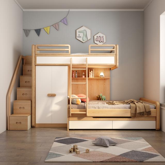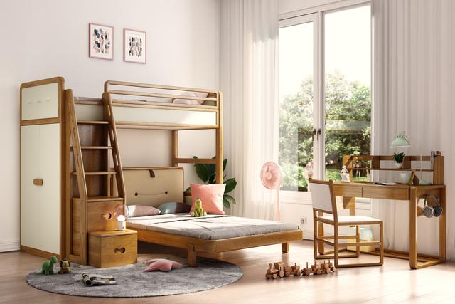 這款簡(jiǎn)單結(jié)構(gòu)中透露出隱隱的藏寶箱氣息,原木色的它盡顯大氣,床底能儲(chǔ)物,有著加深款的衣柜,上下樓梯走著安全又方便,每個(gè)踏板呈現(xiàn)柜體式儲(chǔ)物柜,孩子的玩具書本不用擔(dān)心沒(méi)地放。
