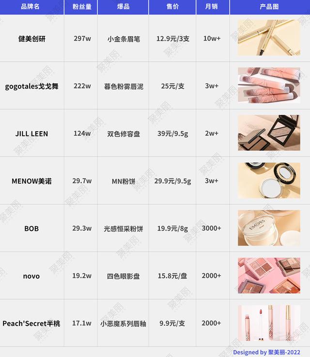 據(jù)記者不完全統(tǒng)計,下方圖表中是超低價彩妝領(lǐng)域的一些頭部品牌,它們呈現(xiàn)了粉絲數(shù)量大、售價低、月銷高的普遍特點(diǎn)。