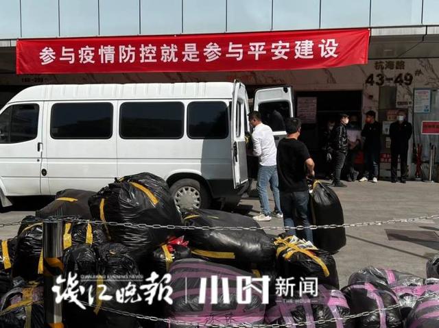 在蘇杭市場門口,設(shè)置了貨物出場通道,已有一些打包好的包裹放在這里,并有專人對(duì)貨物外包裝進(jìn)行消毒。待運(yùn)送的車輛一到,就可搬貨上車。