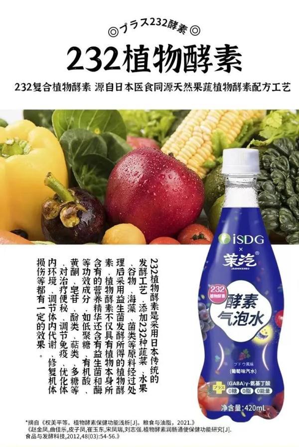 另外,包裝上還標注了“232植物酵素”“0糖0脂0能量”等字樣,售價在10元左右,略高于一般氣泡水。
