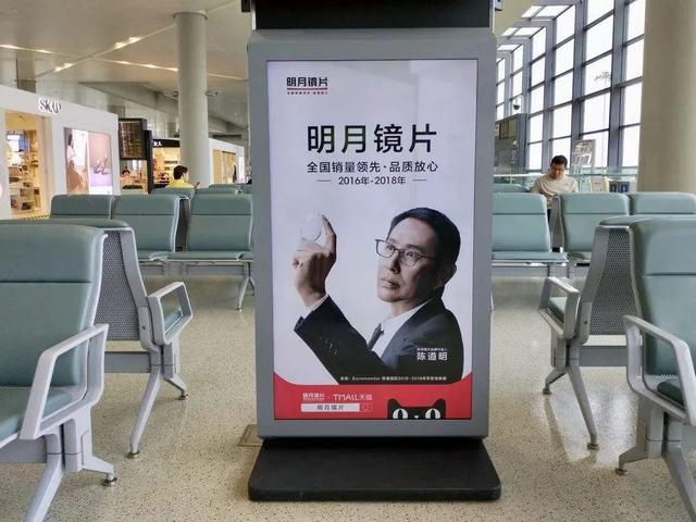 2017年,自明月定下品牌戰(zhàn)略的同時(shí),我們C端用戶印象比較深刻就是:陳道明戴著眼鏡在電視上說出:“明月鏡片,全國(guó)銷量領(lǐng)先”的廣告語(yǔ);并且可以在機(jī)場(chǎng)等高凈值客戶出入的地方看見明月投放的廣告。