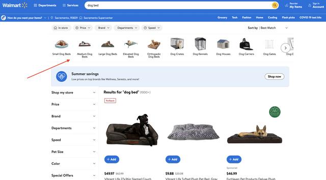 這是沃爾瑪?shù)膁og bed搜索結(jié)果