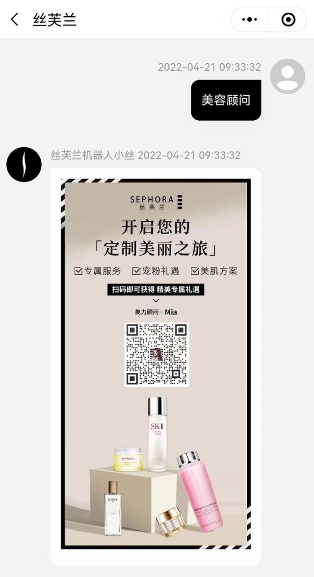 在經(jīng)過一系列前期鋪墊之后,絲芙蘭的私域轉化體驗可以說是非常絲滑。