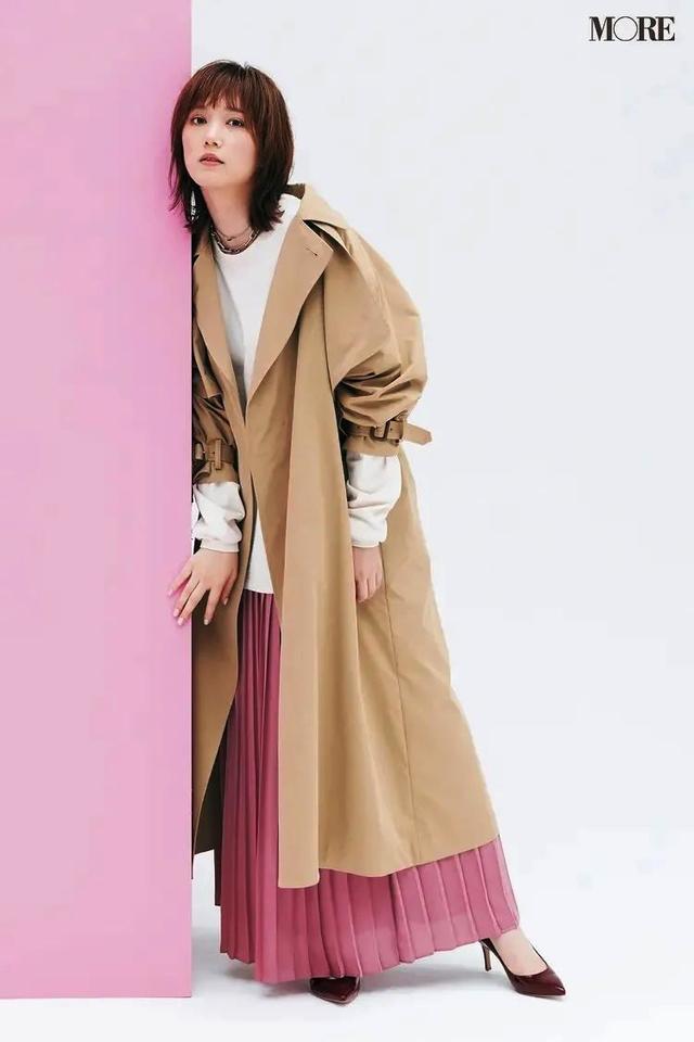 對于小個子女生來說,想要把風衣與裙子穿出更加女人味的美感,可以選擇有腰帶的風衣,會讓你有著腰線的區(qū)分,更有著腰以下都是飄逸美裙的最美呈現(xiàn)。