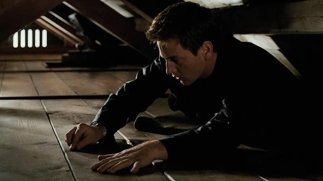 他順著樓梯爬到閣樓上,發(fā)現(xiàn)木板上有個(gè)小洞,從中恰好可以看到玉子房間內(nèi)的場(chǎng)景,旁邊還有一個(gè)掉落的紐扣,
