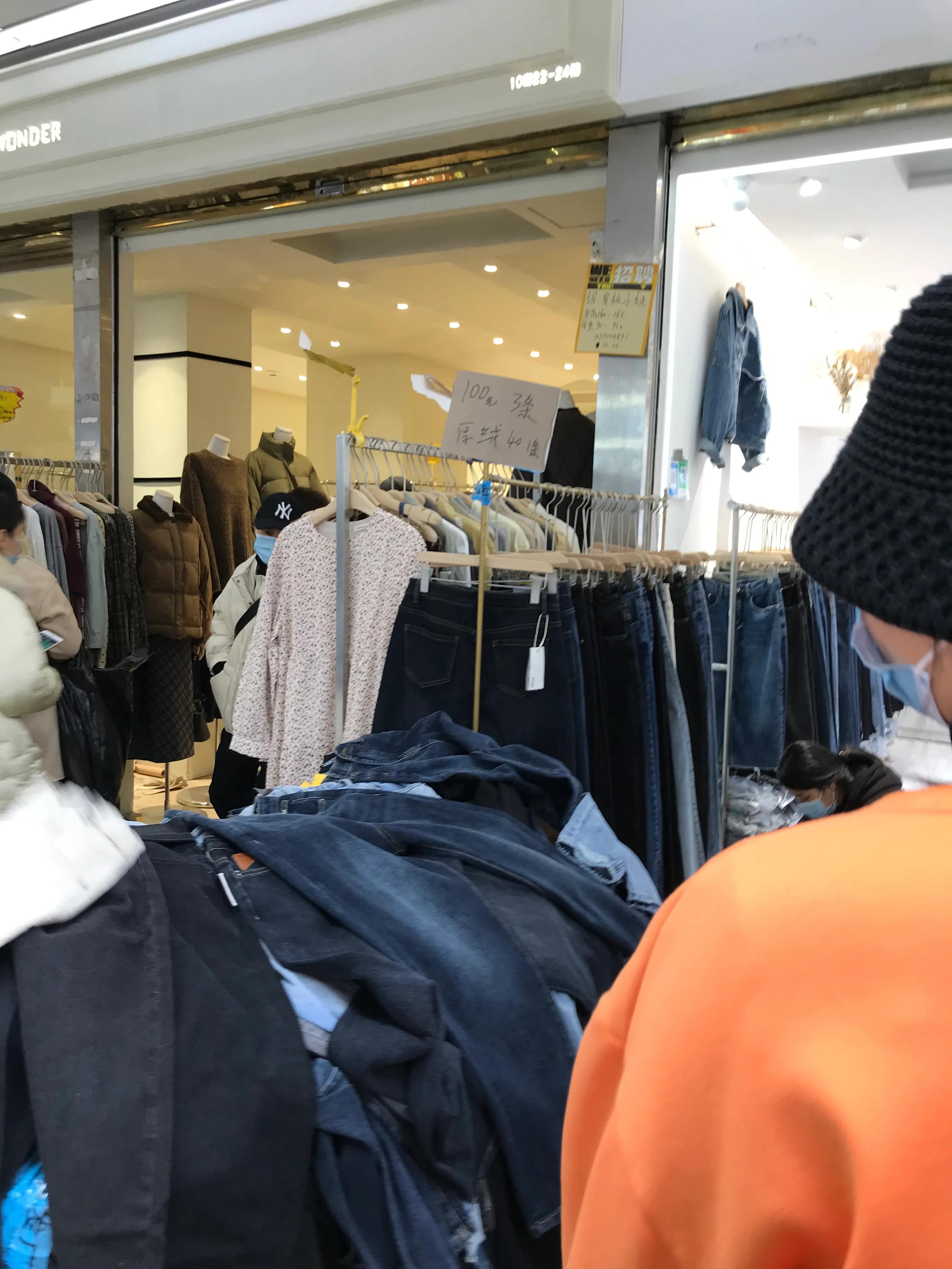 很多打底10元20元30一件,不是斷碼貨,很多檔口平時不零售的,現(xiàn)在也開始零售個而且還很實惠。羽絨服這里最低50元起,大衣100元都很多選擇了。