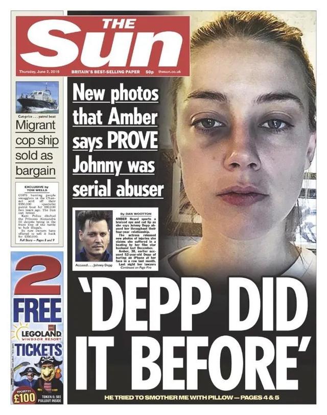 Depp對英國報(bào)紙《太陽報(bào)》提起的誹謗訴訟,理由是他們的文章把Depp稱為「打老婆的人」。
