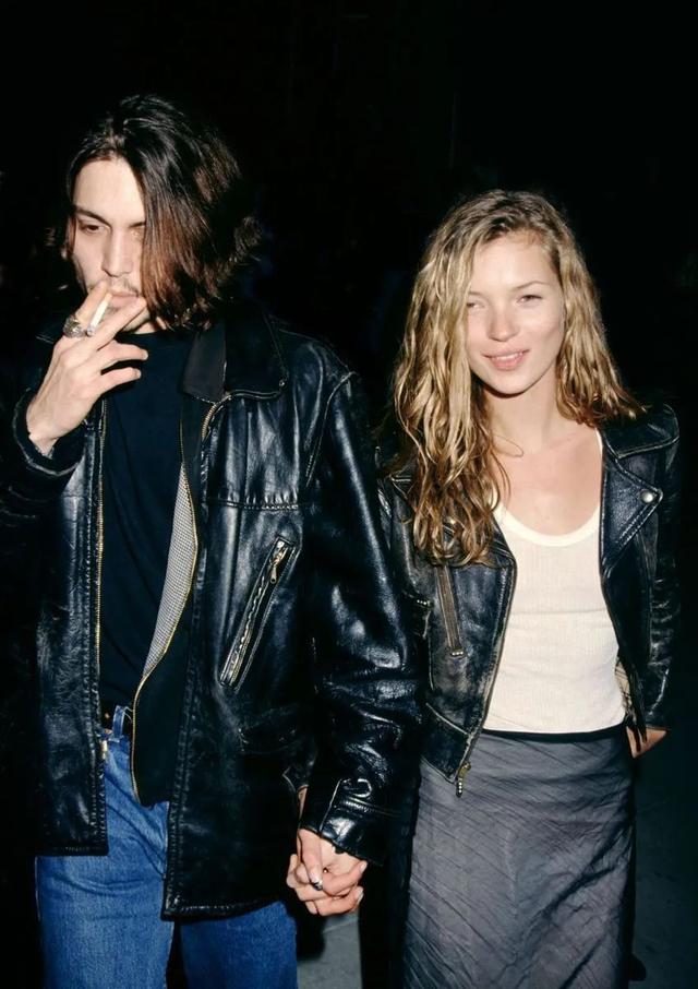 一個影帝一個超??雌饋硖煸斓卦O(shè),相當(dāng)般配,在超模女友的加持下,對Depp的穿搭技巧又有一個新的提升,隨意不羈的搖滾風(fēng)格在這個階段也展現(xiàn)的淋漓盡致,如今看來依舊是情侶模范穿搭。