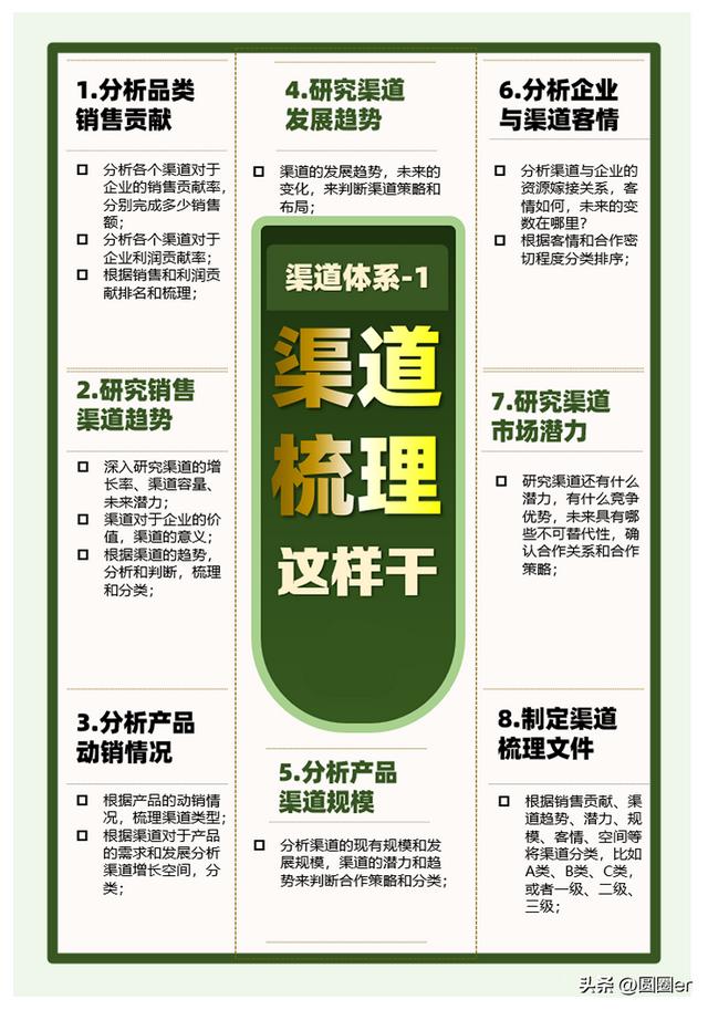建立完善的營銷渠道體系并有效管控營銷渠道是每個(gè)企業(yè)管理者的必修課今天小編為大家分享20年職場(chǎng)老人總結(jié)的營銷渠道管理經(jīng)驗(yàn)請(qǐng)查收!第一步做好渠道梳理;渠道梳理八大方法:一、分析品類-銷售貢獻(xiàn);二、研究銷售-渠道趨勢(shì);三、分析產(chǎn)品-動(dòng)銷情況;四、...